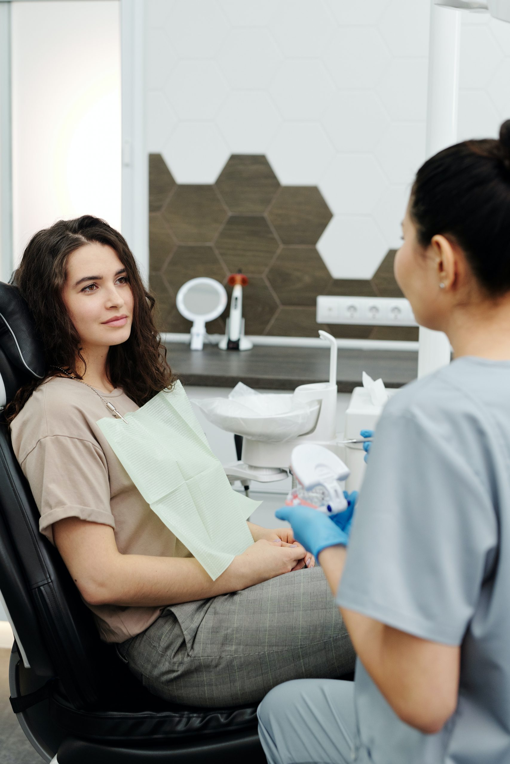 A comprehensive dental exam will be performed by your dentist at your initial dental visit. At regular check-up exams, your dentist and hygienist will include
